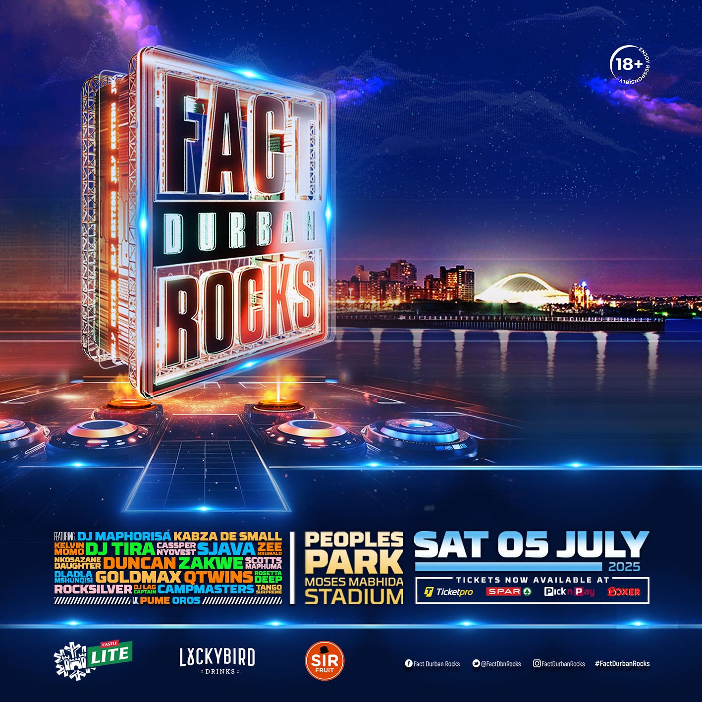 Complementing the sporting calendar was the return of the hugely popular urban music festival, FACT Durban Rocks. Curated by DJ Tira, the festival featured an all-star lineup of South African artists, including heavyweights like DJ Maphorisa, Kabza De Small, Cassper Nyovest, and Sjava. The event was renowned for its massive production, intense energy, and for taking place over 12 hours, running from sunset until the early hours.